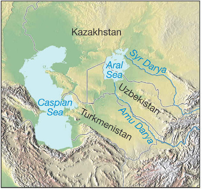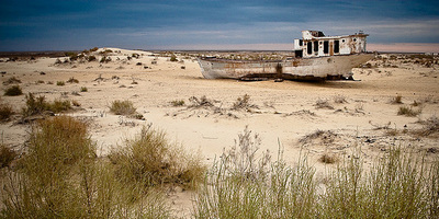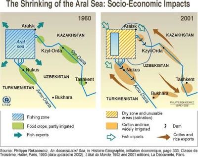 The region around the Aral Sea is a good example of an arid area which is being dramatically changed by agriculture and irrigation.