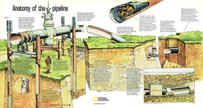 The Trans Alaskan Pipeline System (TAPS) is an example of resource extraction from a glacial environment. The pipeline system has numerous design features included to protect it from the extreme environment in which it is located. However, the remoteness of the pipeline makes it vulnerable to sabotage and gunfire.