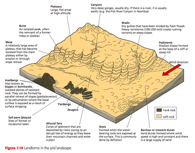i. Hot, arid areas: examine the opportunities for agriculture in these areas, the distinction between aridity and infertility, the importance of irrigation and risk of salinisation, and the processes and factors involved in desertification.