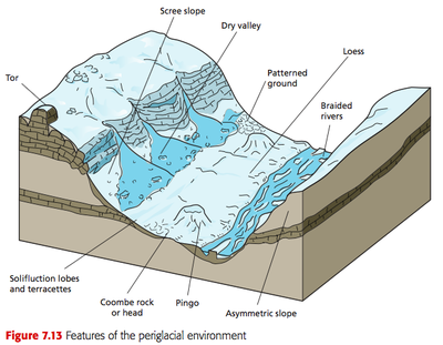 ii. Explain permafrost, patterned ground, solifluction, thermokarst, pingos.
